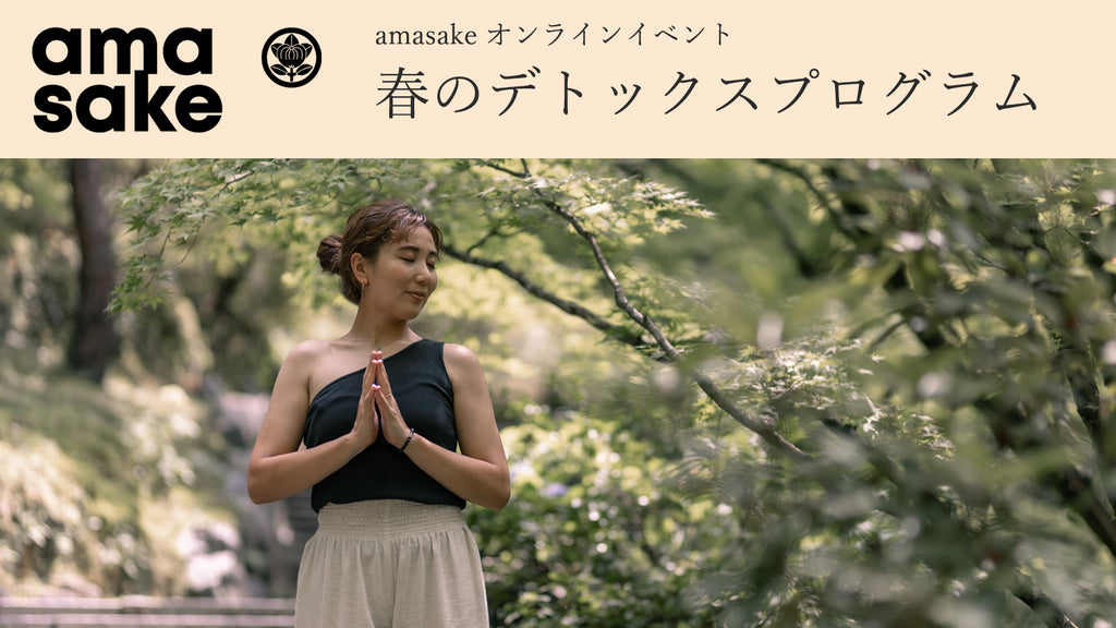 今回のイベントは、本格的な春に向けて『食養生』や『デトックスヨガ』でこころとカラダを整えるためのamasakeセット付オンラインイベントです。オンラインイベントは3/16(土) 10:00-12:00と2週間後に開催する振り返り会3/30(土) 10:00-11:00を予定しています。