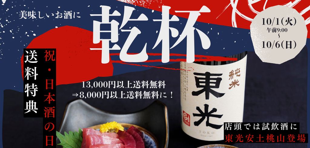 【祝・日本酒の日】10/1(火)9:00am-10/6(日) 送料特典+試飲酒に安土桃山登場!