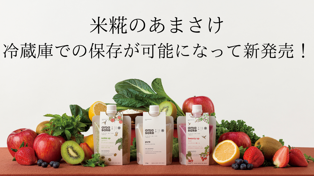 「朝の目覚め」や「午後もうひと踏ん張りしたいとき」など、暮らしのシーンに寄り添ってココロもカラダもサポートすることをコンセプトに、山形県産米の米糀から造ったノンアルコールの甘酒と、野菜・フルーツのスムージーを合わせた『米糀のあまさけ』シリーズ。