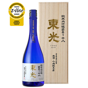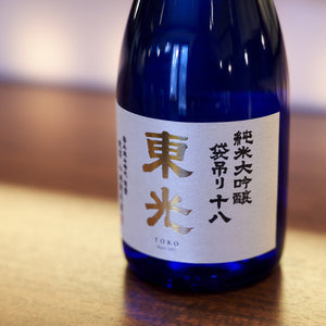 山形の豊かな雪解け水、その伏流水で育てられた米。それらをこの土地を愛する蔵人が長年培ってきた醸造技術と感覚、今できる全てを尽くし、この土地の自然が生みだす「最も純粋な美味しさ」を体現する『東光純米大吟醸袋吊り 十八』を造り上げました。