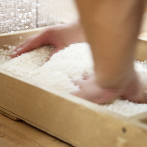 米が割れないよう削っていくには、摩擦熱がかからないようにゆっくり丁寧に精米する必要があります。自社の精米機を微調整しながら約7日間かけて丁寧に磨きあげていきます。18%まで精米された米の直径はなんと2mm程度、米の表面は真珠のような純白色の輝きになります。